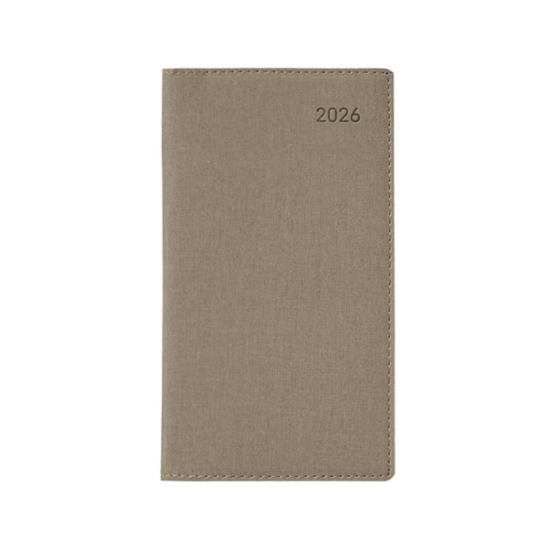 48절 수첩 | 색상: 브라운 | 표지원단: 습식PU | 표지규격: 92×170(mm) | 내지규격: 86×157(mm) | 내지유형: 노트식/일주일식