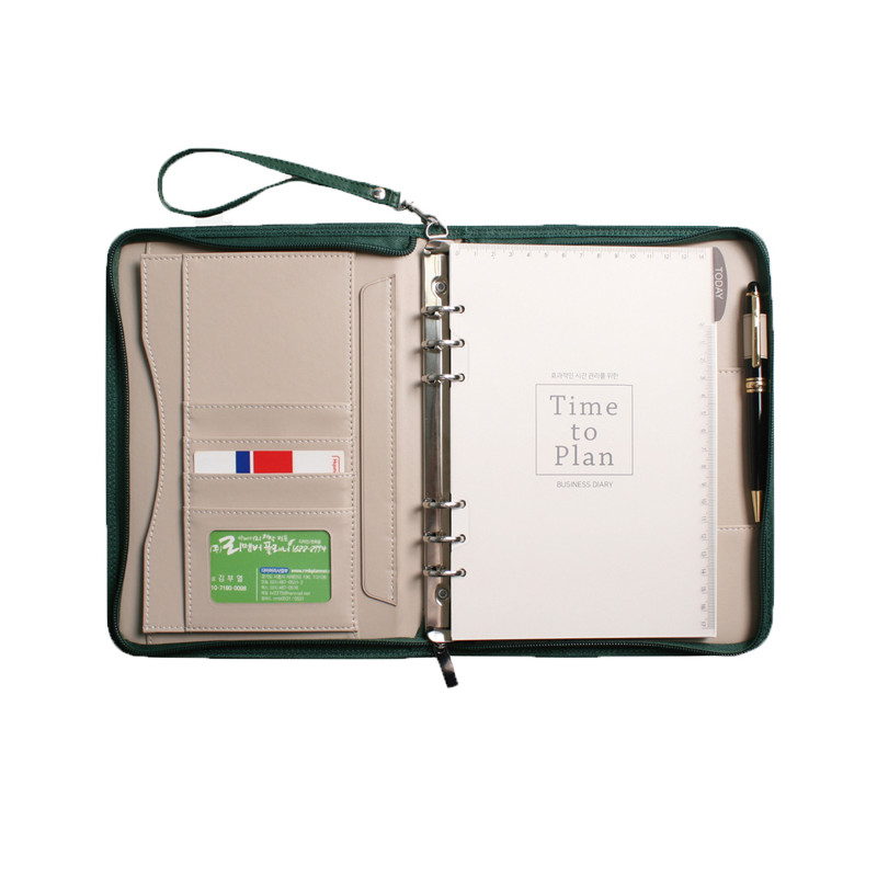 25절 지퍼시스템 | 색상: 그린 | 표지원단: 습식PU | 표지규격: 190x245(mm) | 내지규격: 150x220(mm) | 내지유형: 노트(240p),이틀식(256p),주일식(256p),하루식(388p)