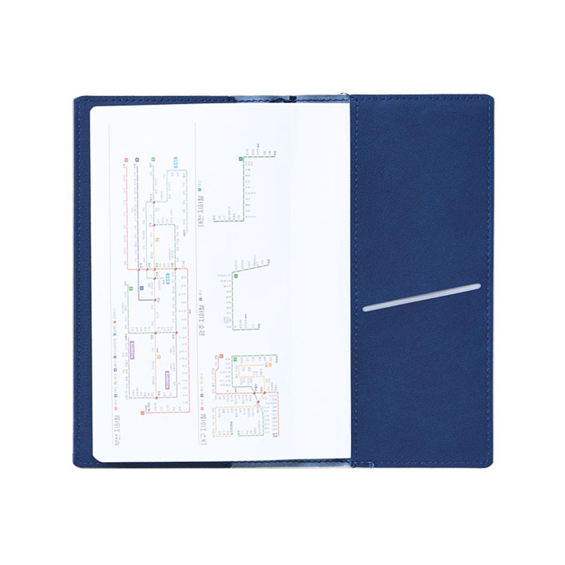 48절 수첩 | 색상: 네이비 | 표지원단: 습식PU | 표지규격: 92×170(mm) | 내지규격: 86×157(mm) | 내지유형: 노트식/일주일식
