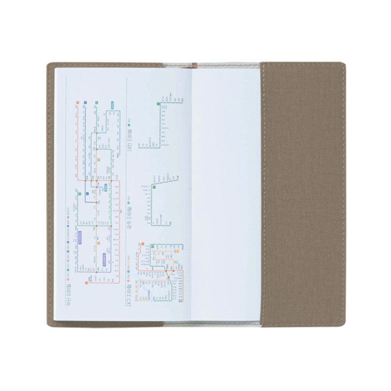 48절 수첩 | 색상: 브라운 | 표지원단: 습식PU | 표지규격: 92×170(mm) | 내지규격: 86×157(mm) | 내지유형: 노트식/일주일식